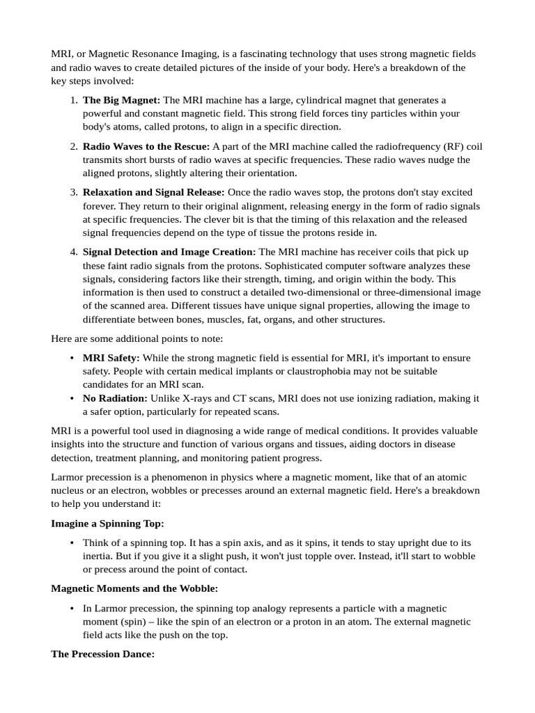 MRI, or Magnetic Resonance Imaging, is a fascinating technology that uses strong magnetic fields