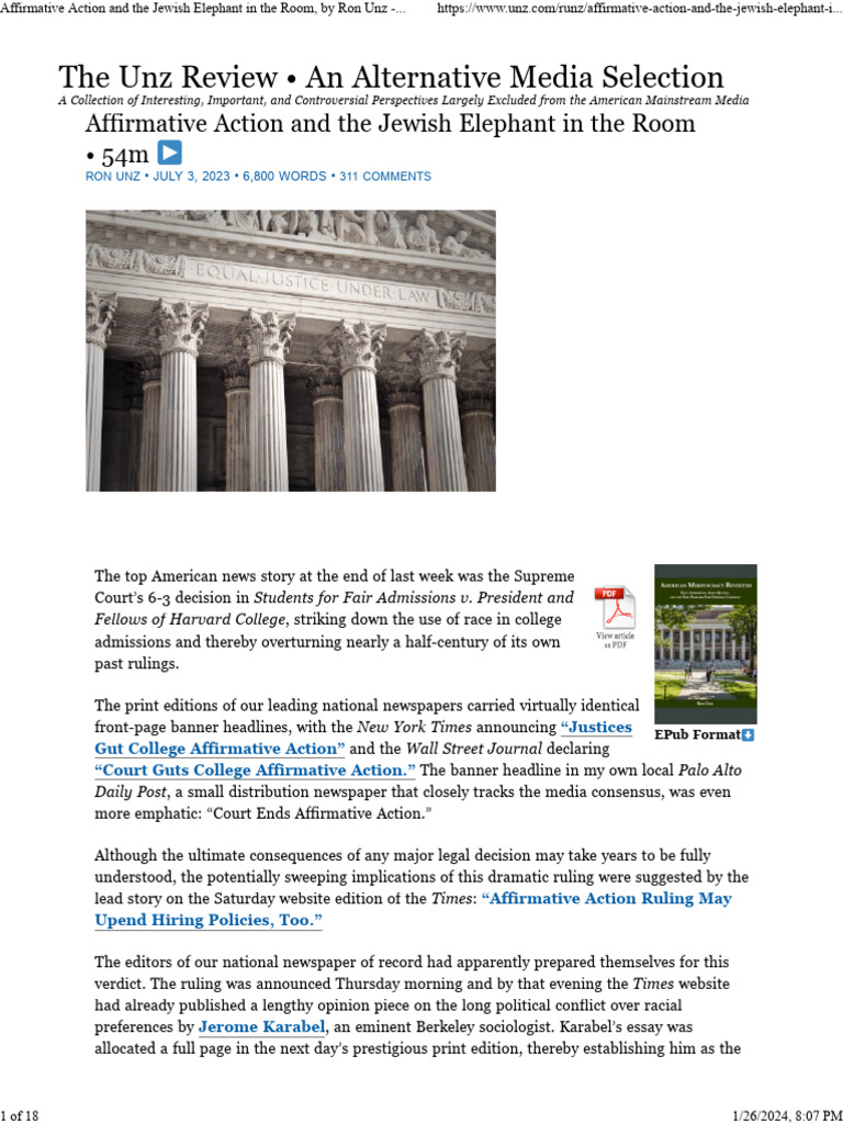 Affirmative Action and the Jewish Elephant in the Room, by Ron Unz -... https://www.unz.com/runz/affirmative-action-and-the-jewish-elephant-i...