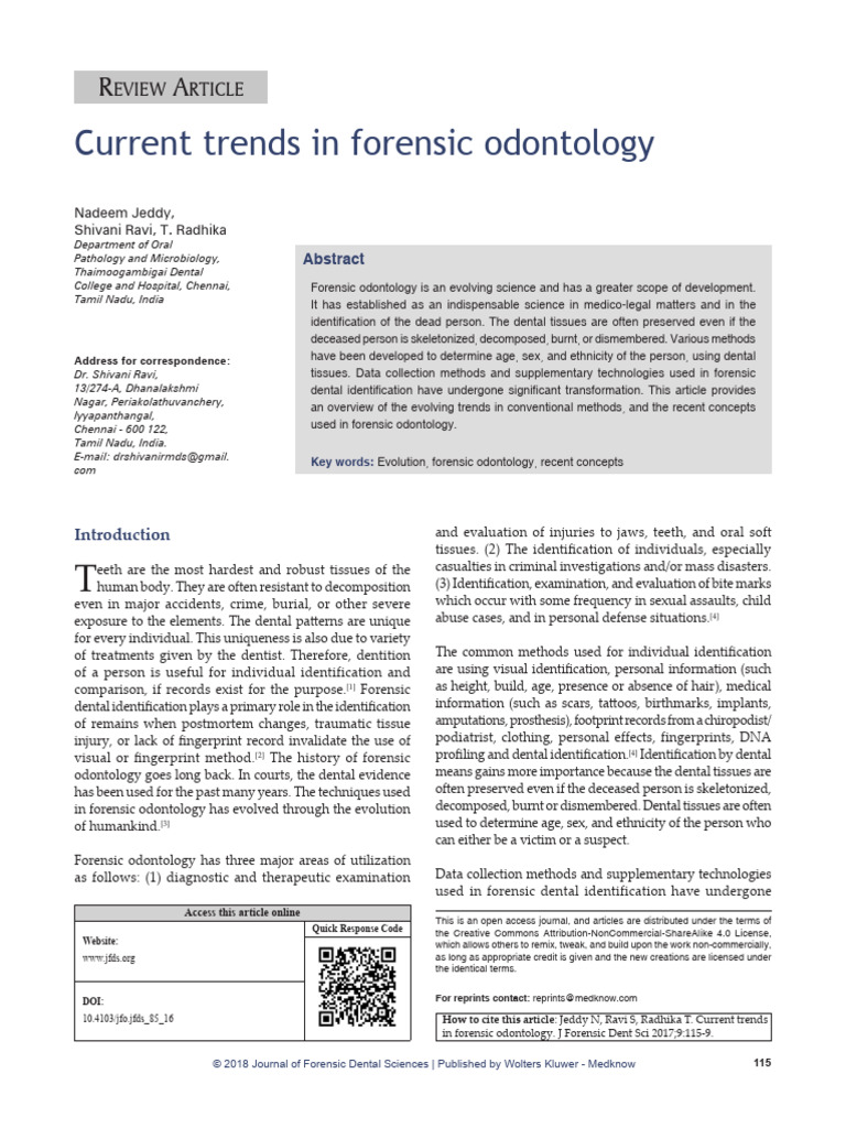 2009;42:125‑30. trace” – Insight into recent advances of forensic odontology.