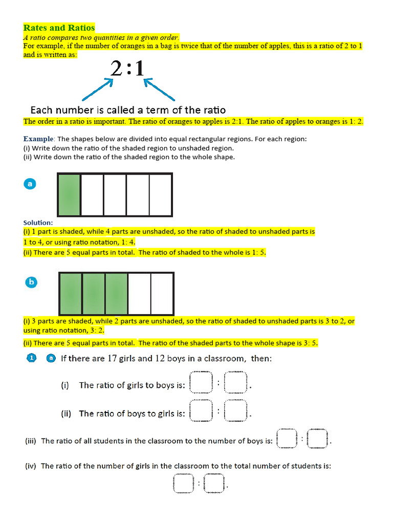 For example, if the number of oranges in a bag is twice that of the number of apples, this is a ratio of 2 to 1