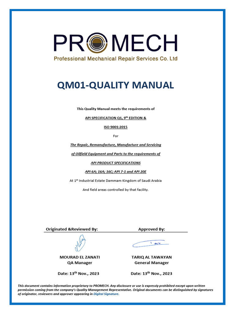 PROMECH Quality Manual Overview