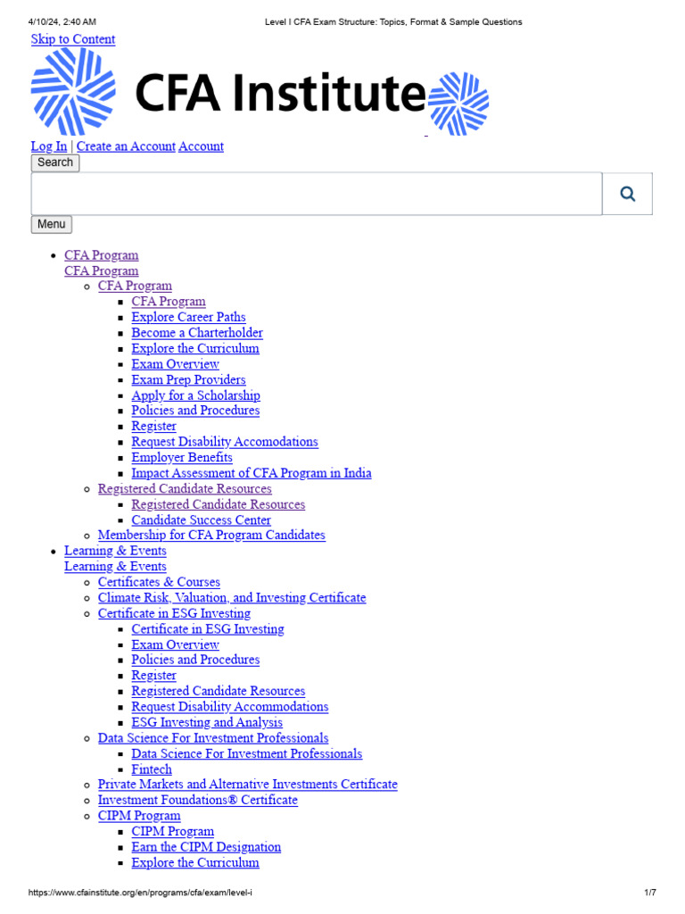 https://www.cfainstitute.org/en/programs/cfa/exam/level-i 2/7
