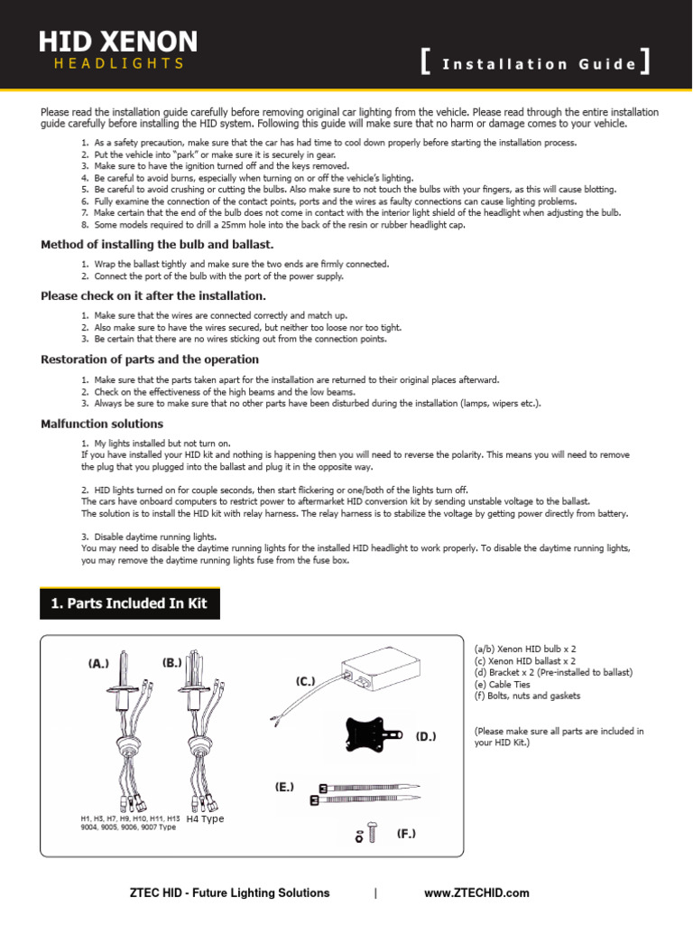 guide carefully before installing the HID system. Following this guide will make sure that no harm or damage comes to your vehicle.