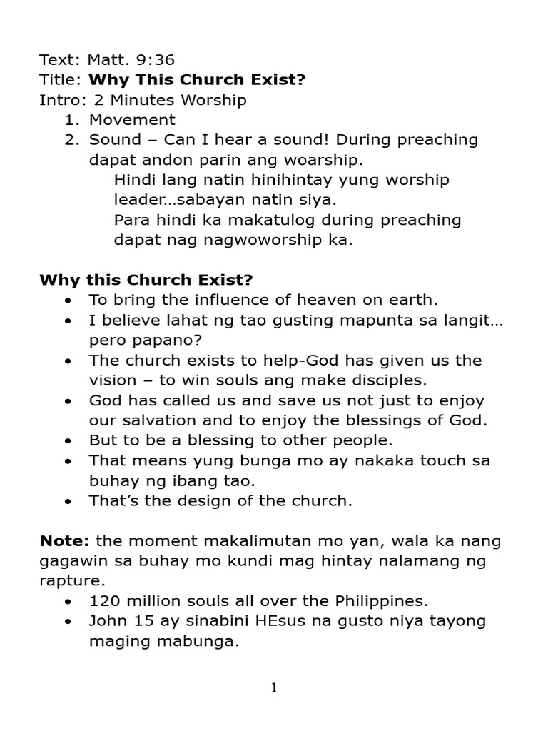 Title: Why This Church Exist?