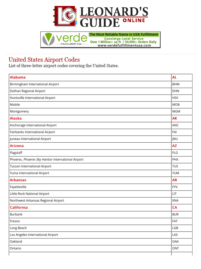 United States Airport Codes