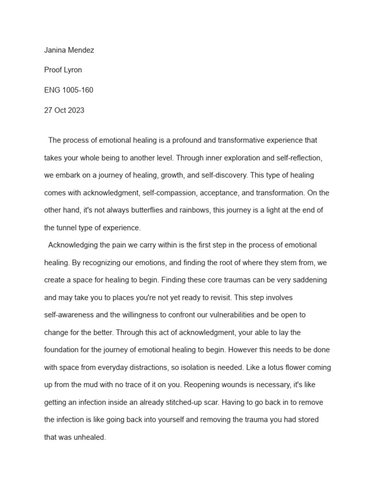 healing. By recognizing our emotions, and finding the root of where they stem from, we