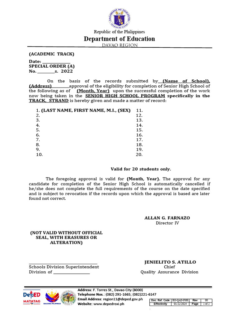 Email Address: region11@[Link] Doc. Ref. Code RO-QAD-F068 Rev 00
