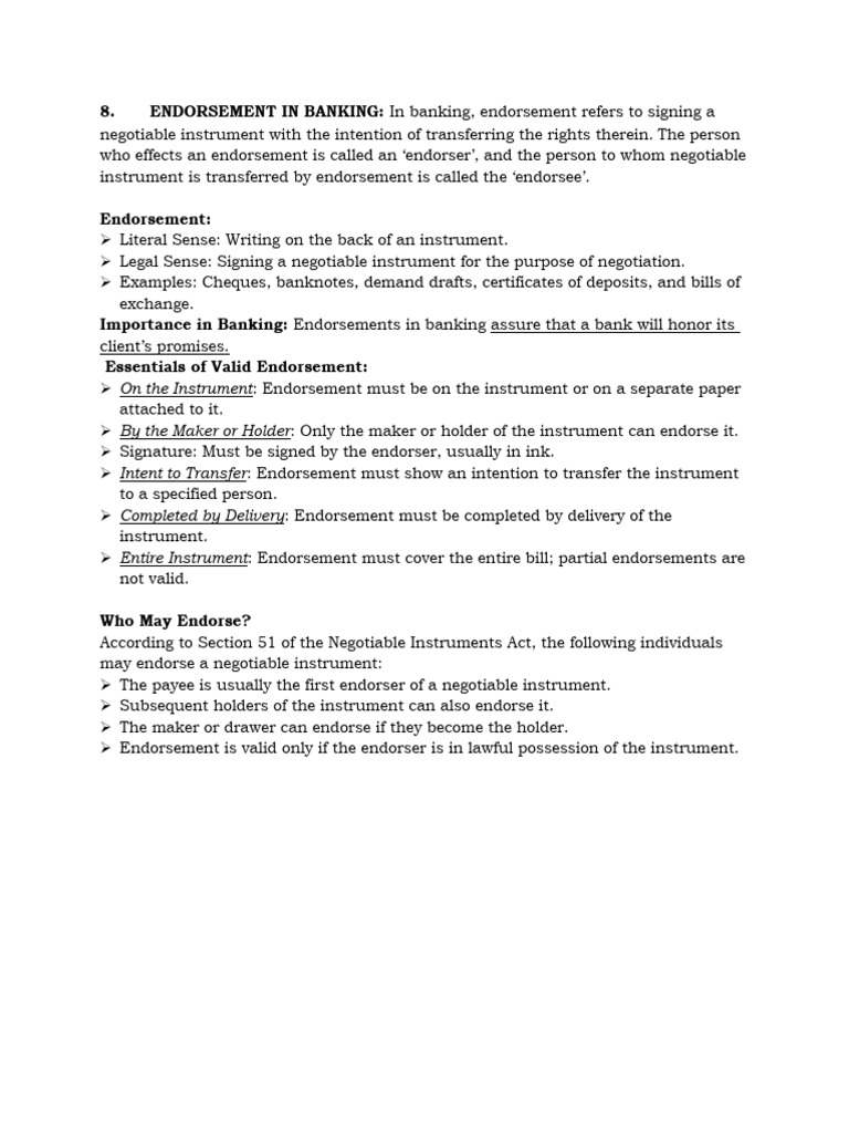 9. FORMS OF ENDORSEMENT: Endorsements on negotiable instruments can