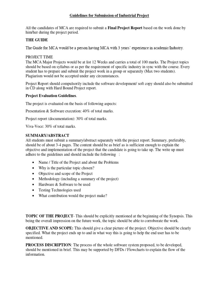 All the candidates of MCA are required to submit a Final Project Report based on the work done by