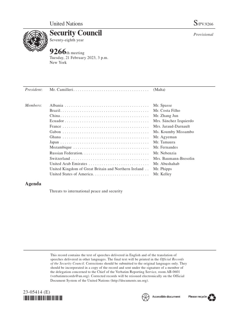 S/PV.9266 Threats to international peace and security 21/02/2023