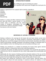 This unit explains the basic concepts of fashion and its relevance. It is important