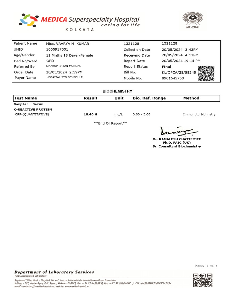 Age/Gender 11 Mnths 18 Days /Female Receiving Date 20/05/2024 4:11PM
