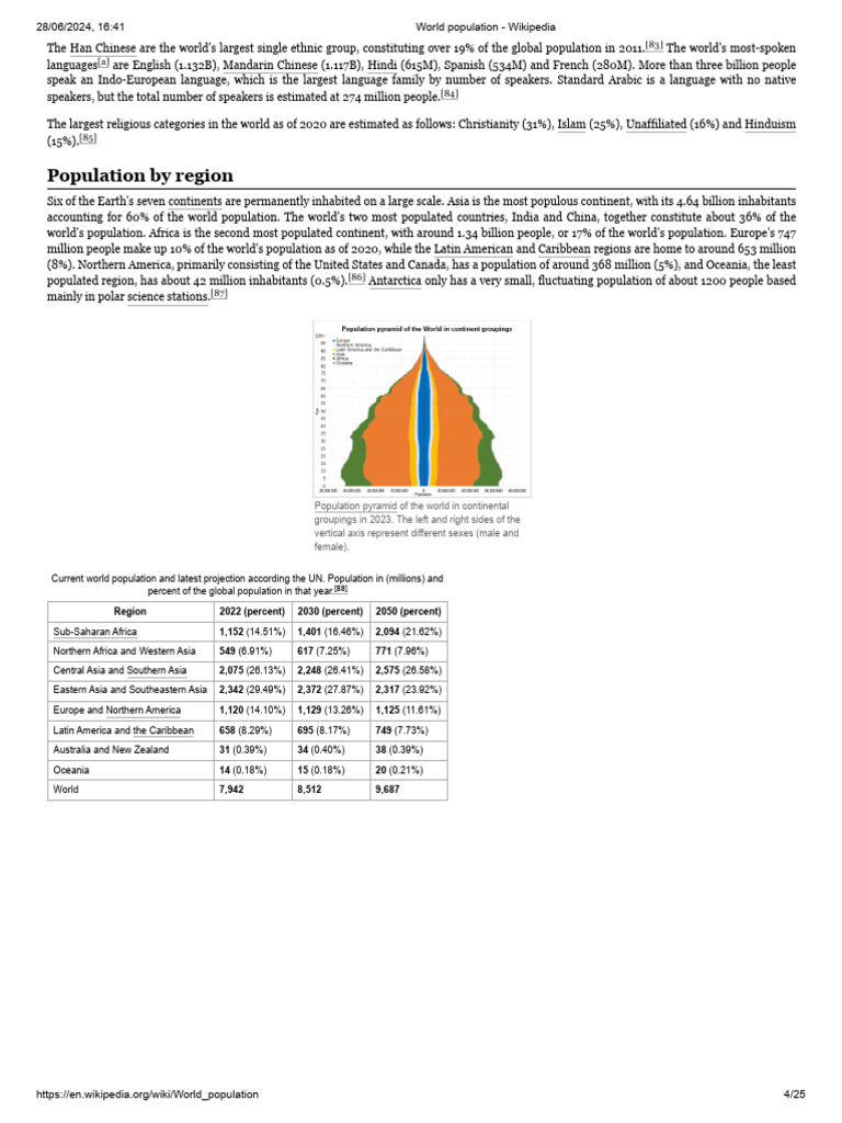 world's population. Africa is the second most populated continent, with around 1.34 billion people, or 17% of the world's population. Europe's 747