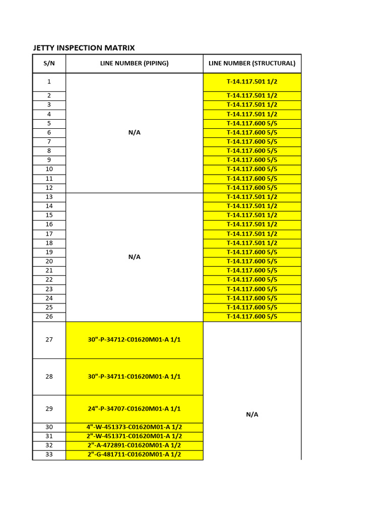 WLD-JT-MT-0002 100% JT-RT-00003 HYDRO AS PER LINE LIST / MT/PT NOT REQUIRED