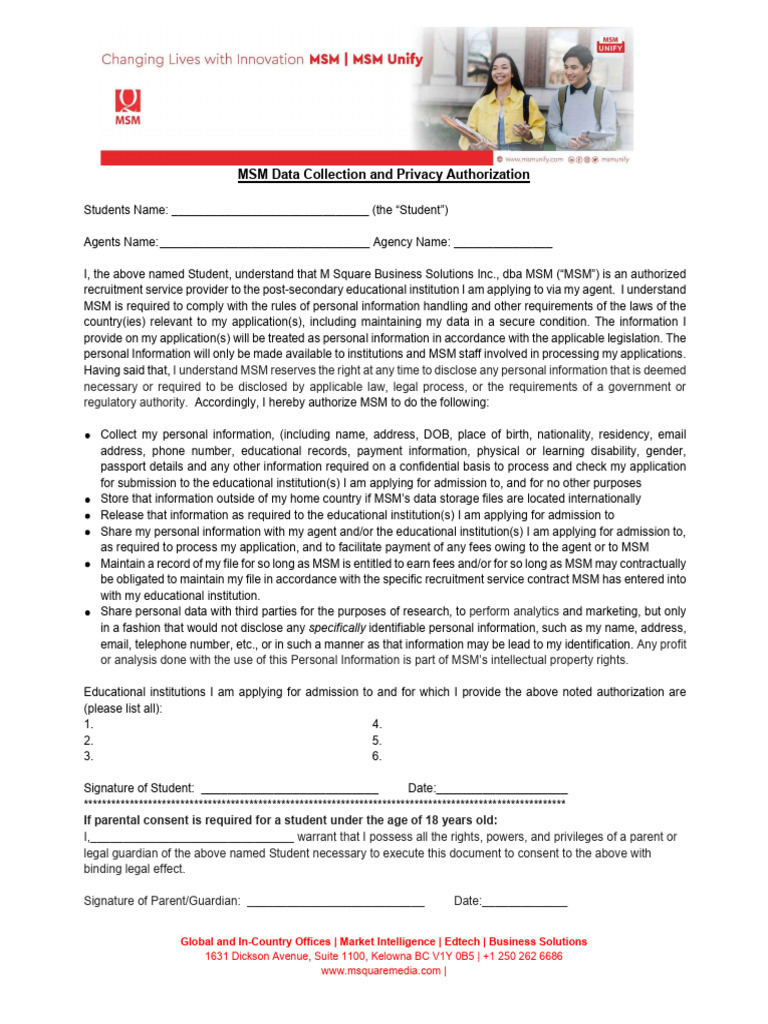 MSM Data Collection and Privacy Authorization