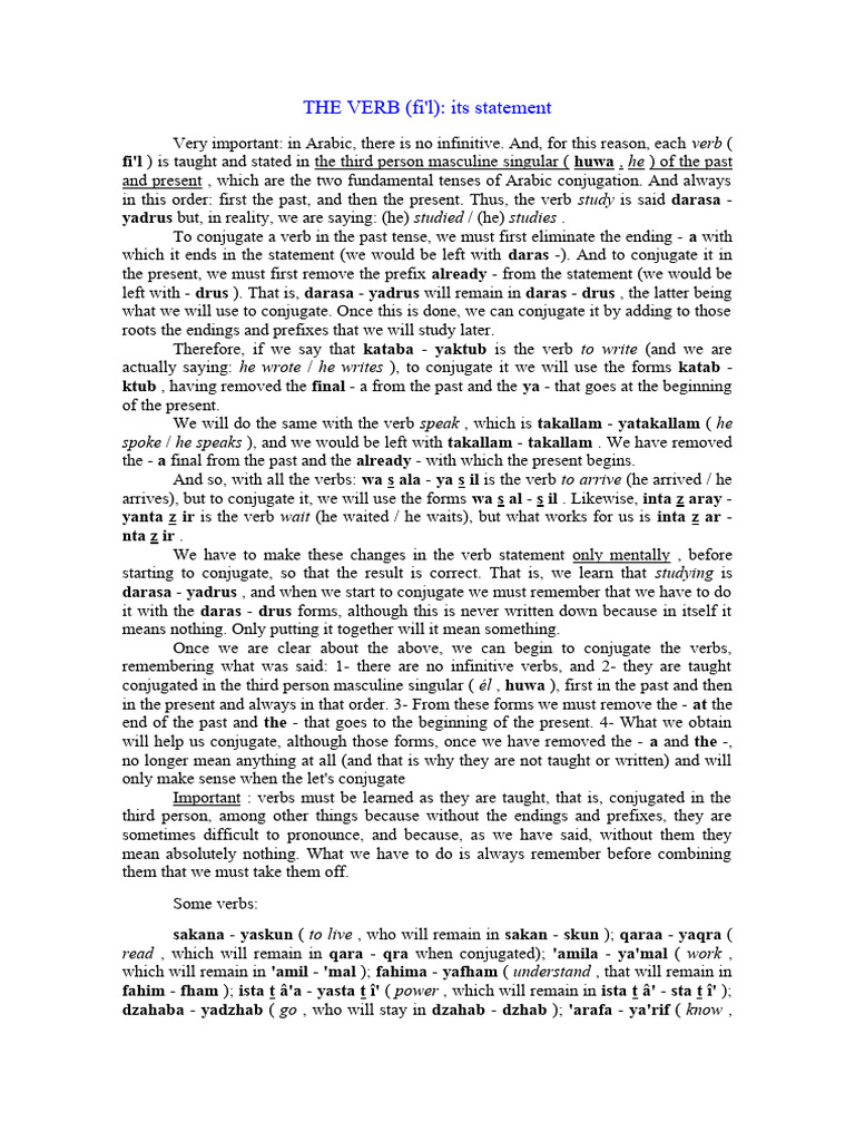 THE VERB (fi'l): its statement