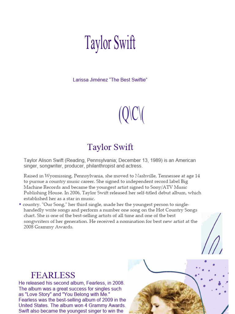 Taylor Alison Swift (Reading, Pennsylvania; December 13, 1989) is an American