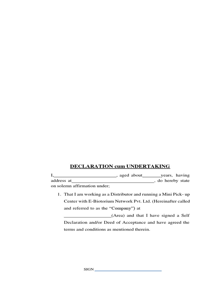 DECLARATION cum UNDERTAKING
