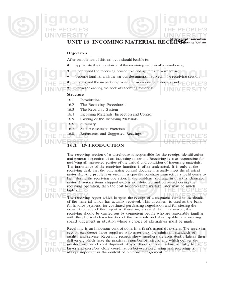 UNIT 16 INCOMING MATERIAL RECEIPTS