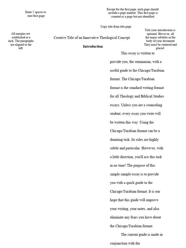 Chicago/Turabian Format Guide for Essays
