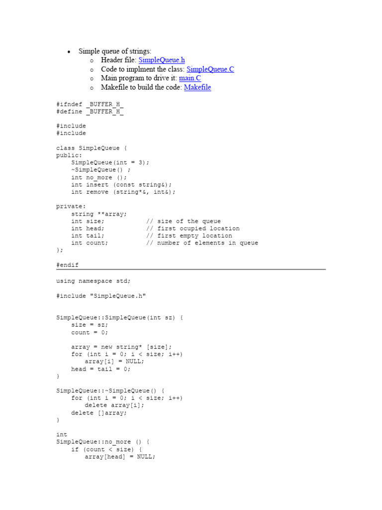 o Code to implment the class: SimpleQueue.C