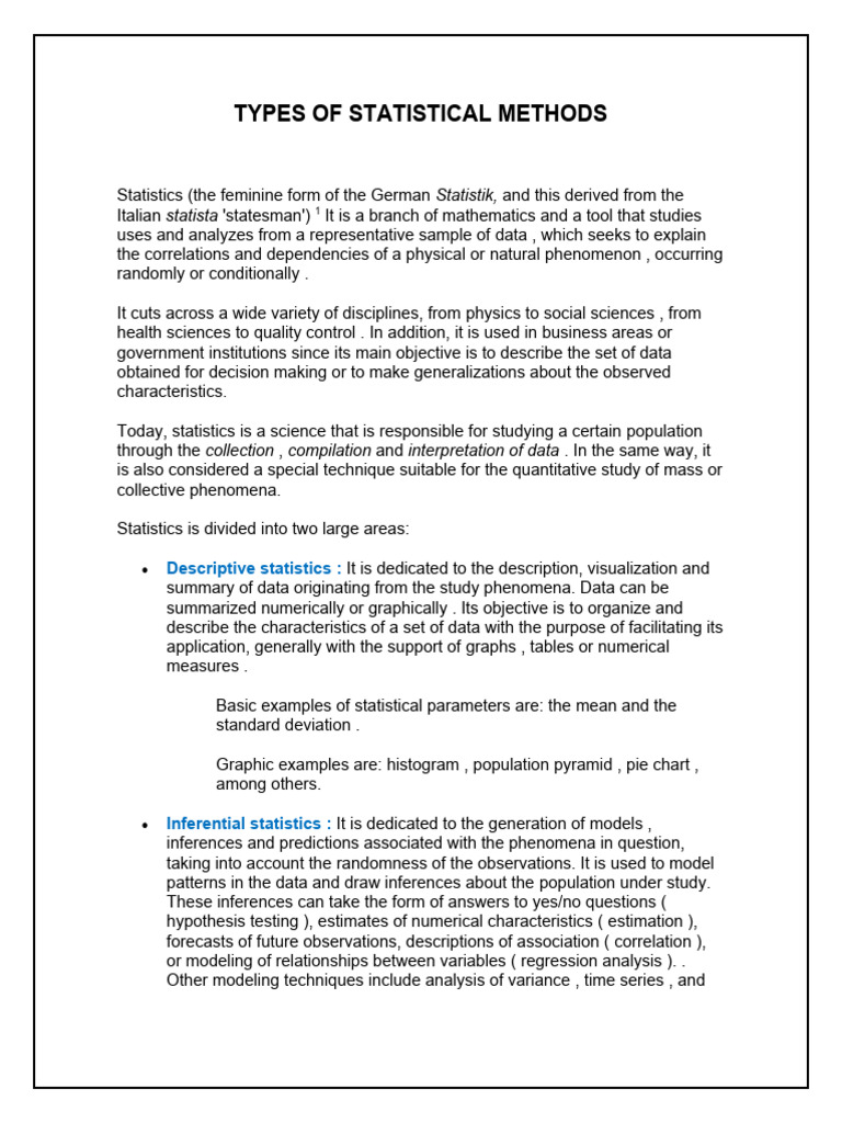 TYPES OF STATISTICAL METHODS