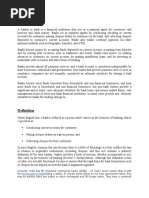 Traditional Banking Activities Banks act as payment agents by conducting checking or Current Accounts for customers, paying cheques drawn by customers on the bank, and collecting cheques deposited to customers' current accounts. Banks also enable customer payments via other payment methods such as telegraphic transfer, EFTPOS, and ATM. Banks borrow money by accepting funds deposited on current accounts, by accepting term deposits, and by issuing debt securities such as banknotes and bonds. Banks lend money by making advances to customers on current accounts, by making installment loans, and by investing in marketable debt securities and other forms of money lending. Banks provide almost all payment services, and a bank account is considered indispensable by most businesses, individuals and governments. Non-banks that provide payment services such as remittance companies are not normally considered an adequate substitute for having a bank account. Banks borrow most funds from households and non-financial businesses, and lend most funds to households and non-financial businesses, but non-bank lenders provide a significant and in many cases adequate substitute for bank loans, and money market funds, cash management trusts and other non-bank financial institutions in many cases provide an adequate substitute to banks for lending savings to Definition Under English Common Law, a banker is defined as a person who carries on the business of banking, which is specified as: