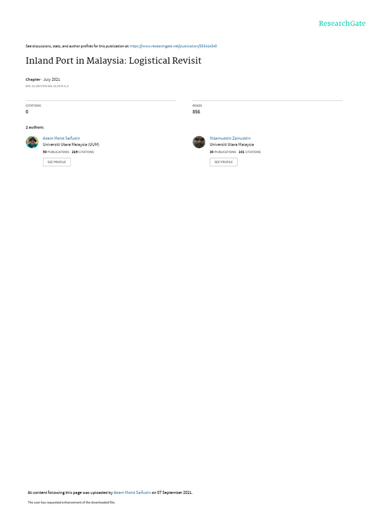 importance of inland ports in Malaysia. As for that matter, this chapter had collected