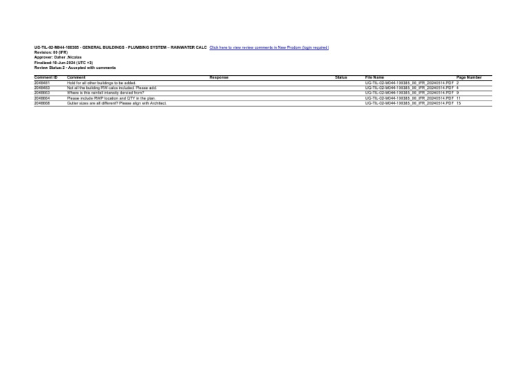 UG-TIL-02-M044-100385 - GENERAL BUILDINGS - PLUMBING SYSTEM – RAINWATER CALC Click here to view review comments in New Prodom (login