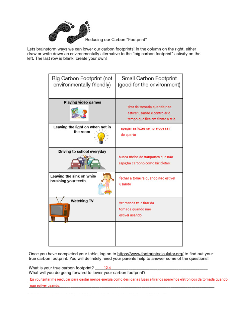 draw or write down an environmentally alternative to the “big carbon footprint” activity on the