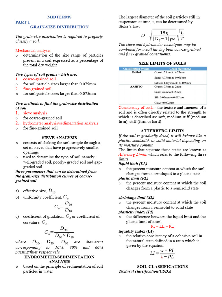 MIDTERMS The largest diameter of the soil particles still in