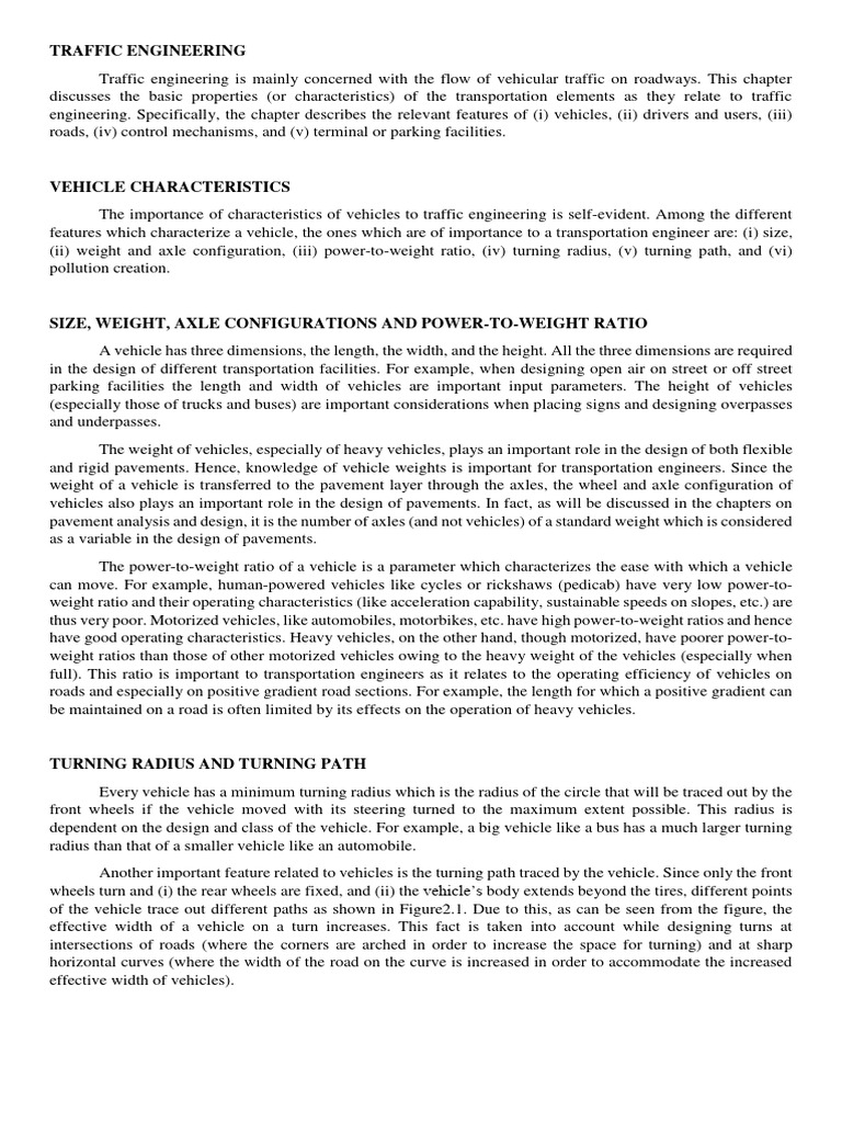 features which characterize a vehicle, the ones which are of importance to a transportation engineer are: (i) size,