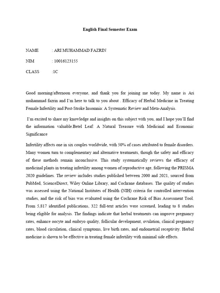 muhammad fazrin and I’m here to talk to you about . Efficacy of Herbal Medicine in Treating