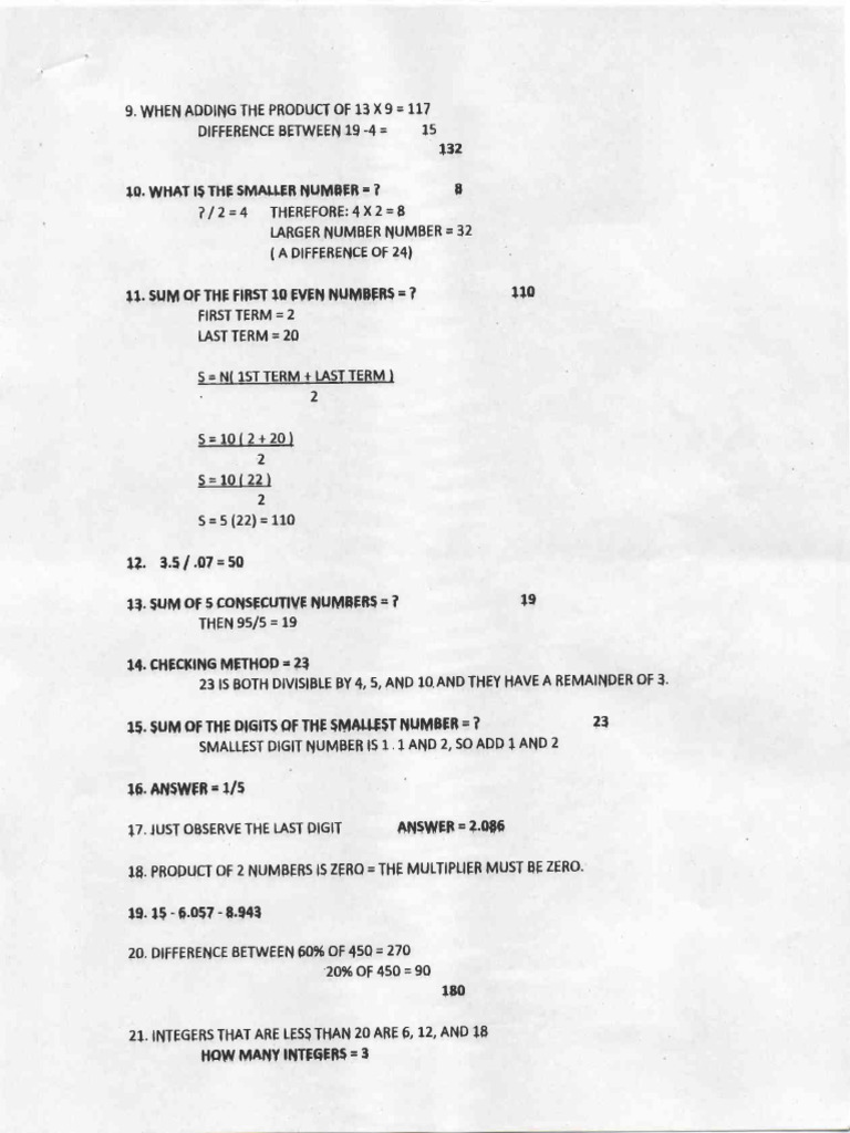 20. DIFFERENCE BETWEEN 60% OF 450 = 270