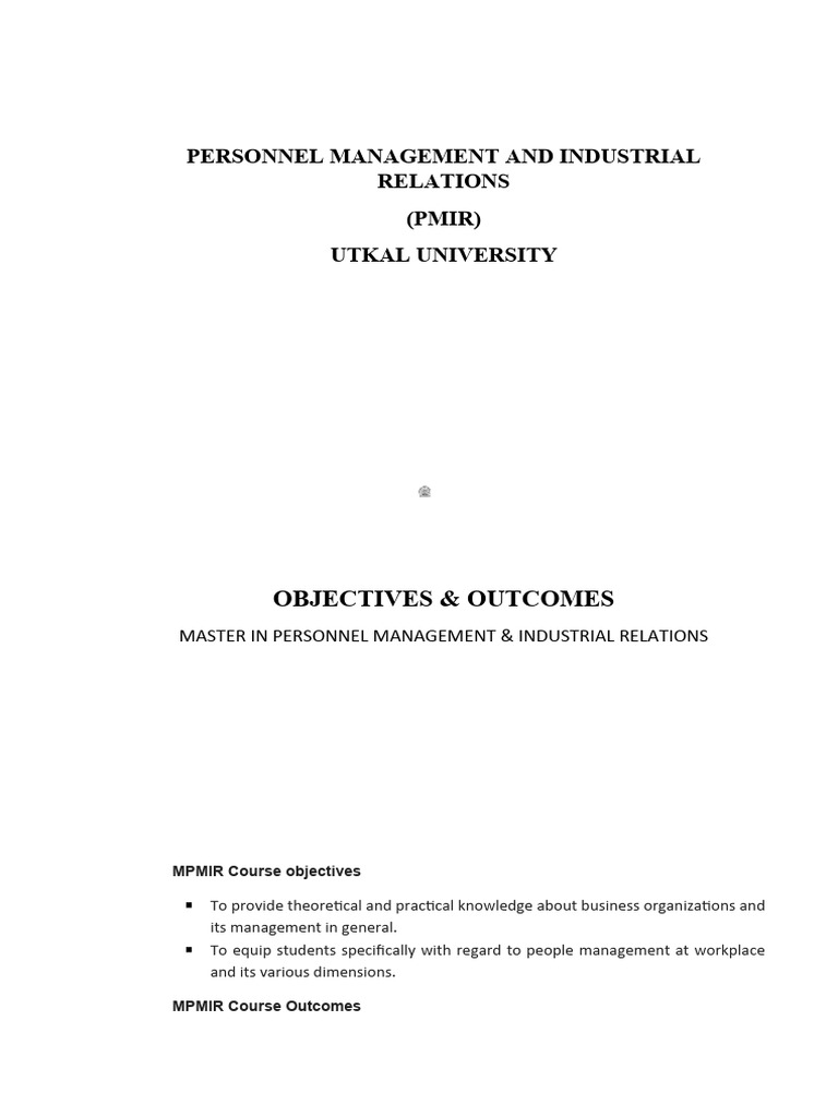 MASTER IN PERSONNEL MANAGEMENT & INDUSTRIAL RELATIONS
