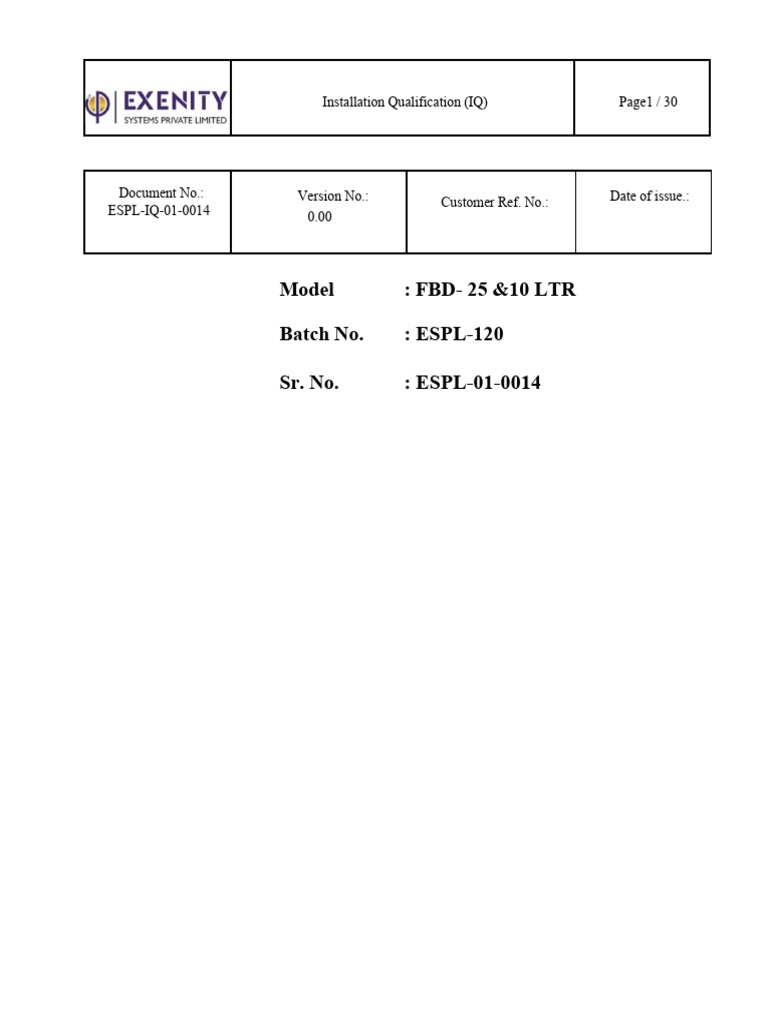 Installation Qualification (IQ) Page1 / 30