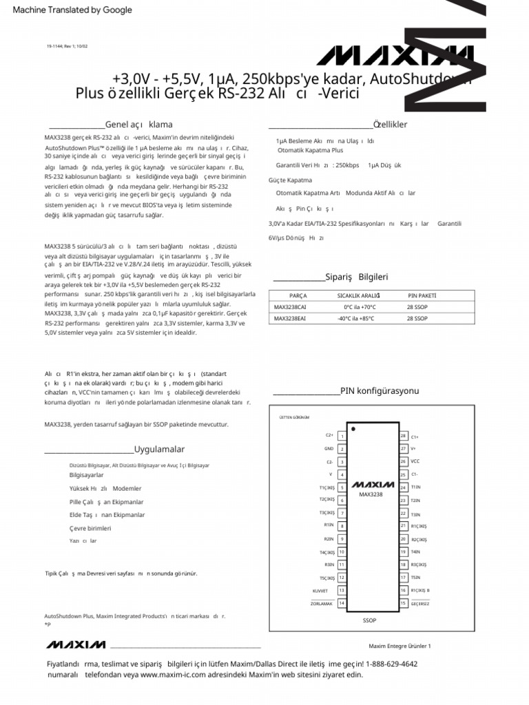 © 2002 Maxim Entegre Ürünler Basılı ABD Maxim Integrated Products'ın tescilli ticari markasıdır.