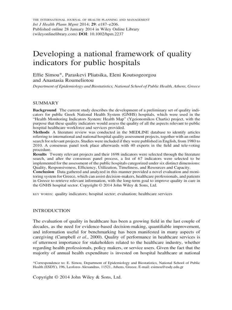 cators for public Greek National Health System (GNHS) hospitals, which were used in the