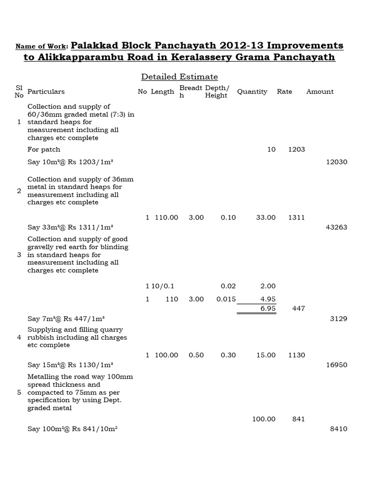 Detailed Estimate