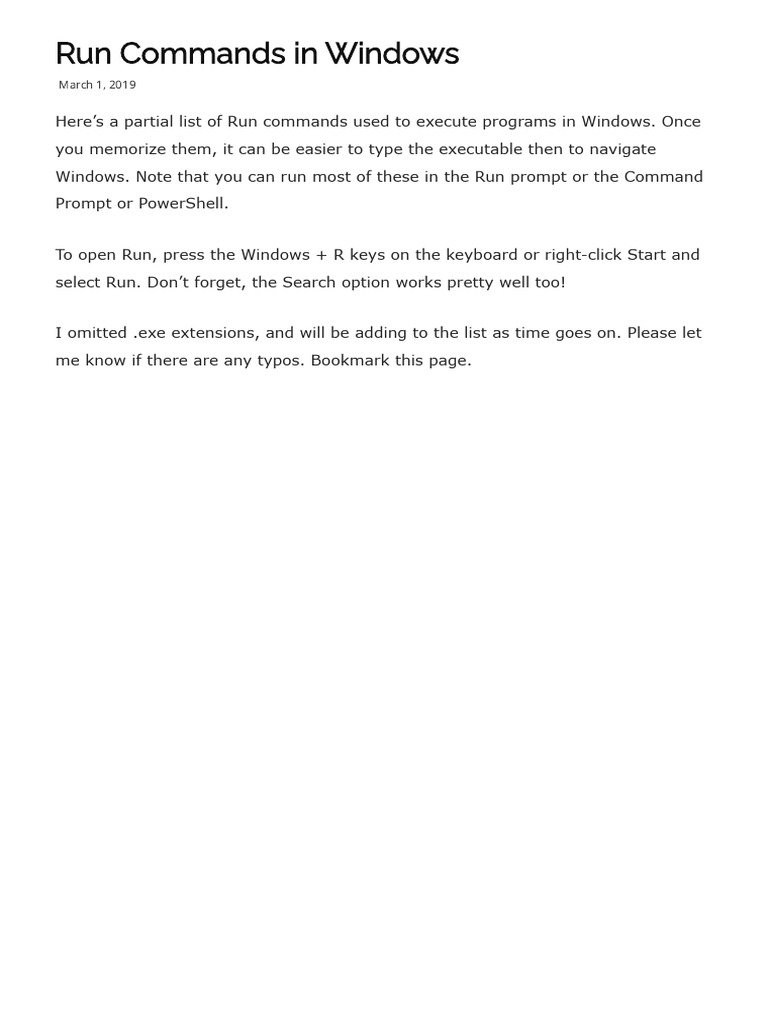 Here’s a partial list of Run commands used to execute programs in Windows. Once