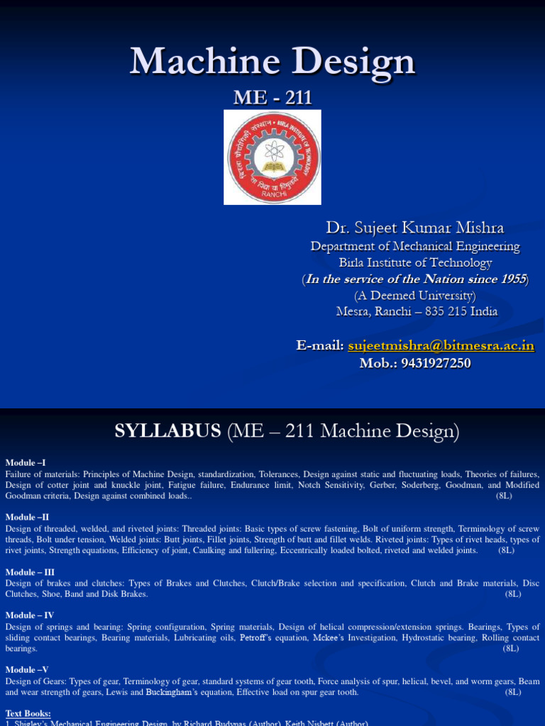 Machine Design Syllabus for ME-211
