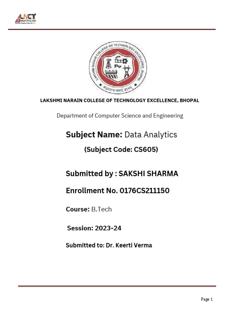 Subject Name: Data Analytics