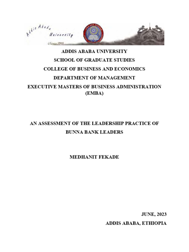 Leadership Style on Bunna Bank Leaders.’ undertaken by Ms. Medhanit Fekade the necessities