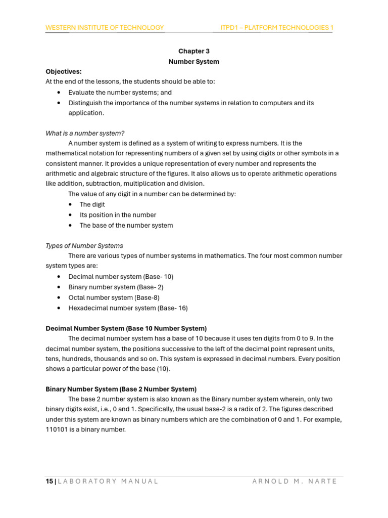 • Evaluate the number systems; and