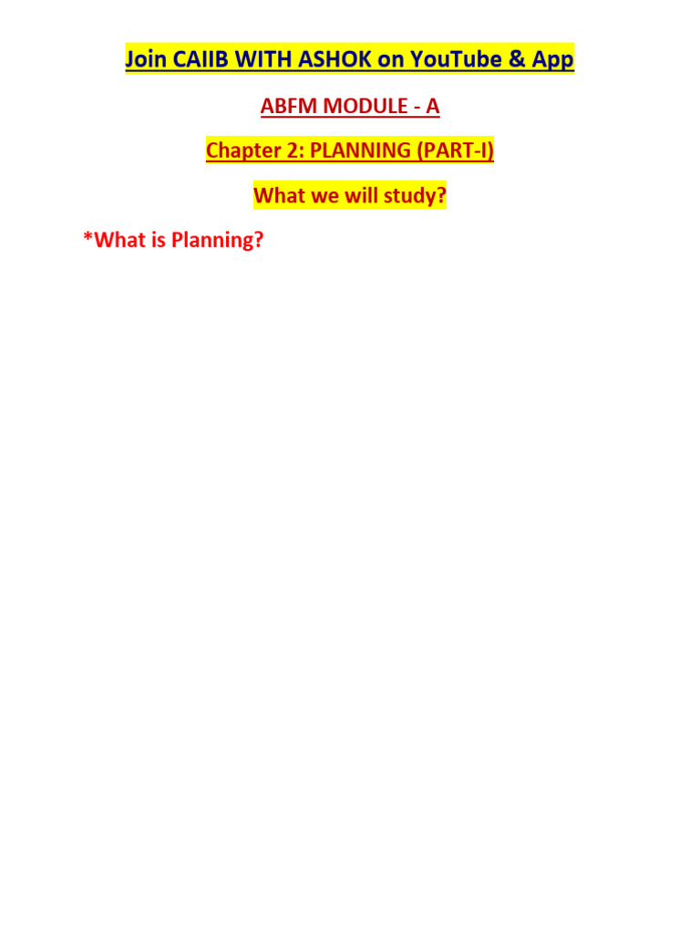 Chapter 2: PLANNING (PART-I)