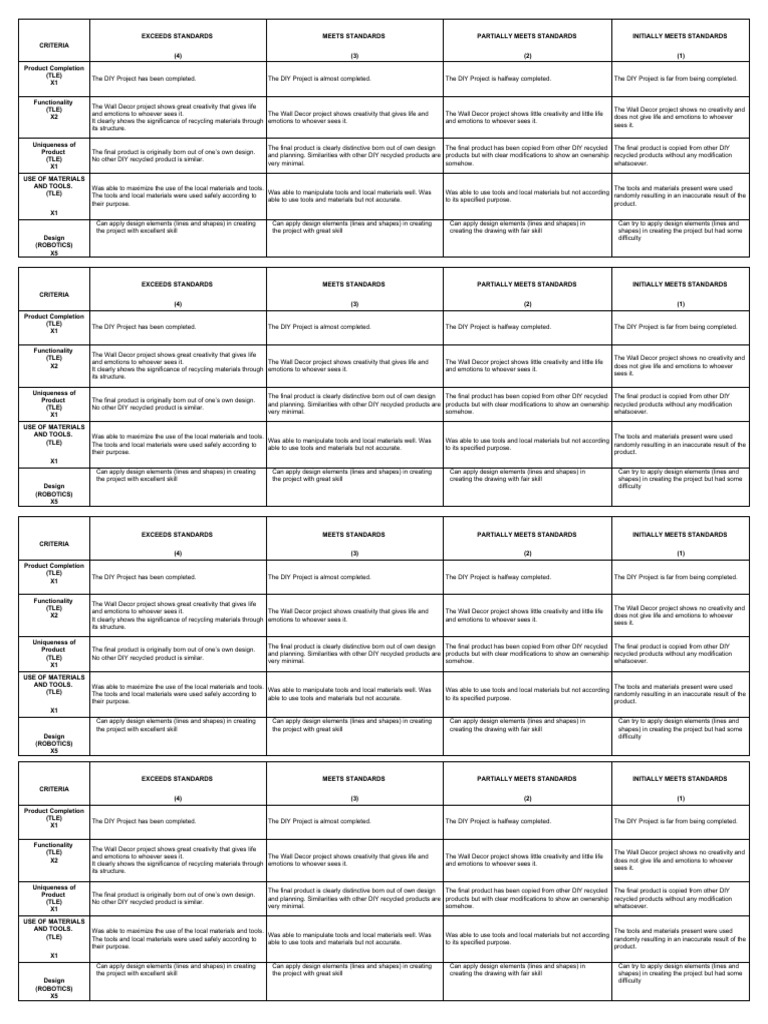 the project with excellent skill the project with great skill creating the drawing with fair skill shapes) in creating the project but had some