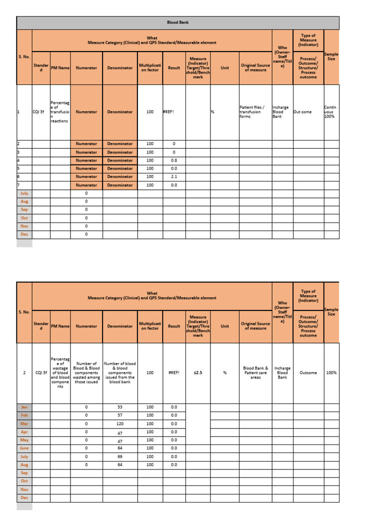 2 CQI 3f of blood components components 100 #REF! ≤2.5 % Patient care Blood Outcome 100%