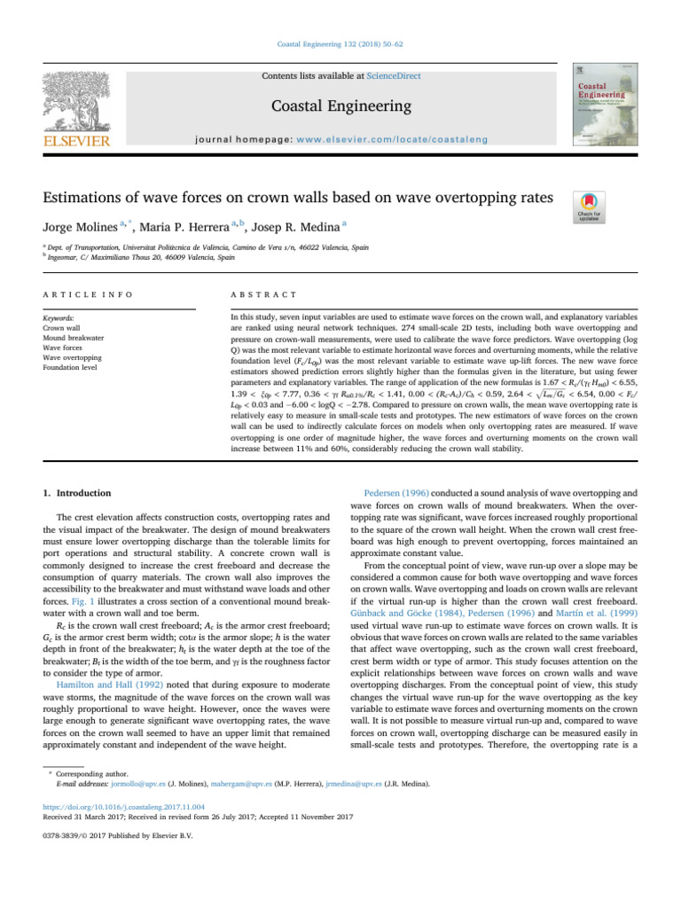 J. Molines et al. Coastal Engineering 132 (2018) 50–62