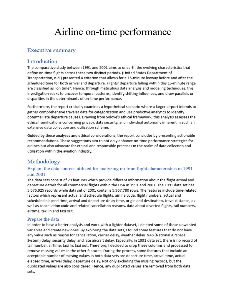 - Present findings on what characterized on-time flights in each year.