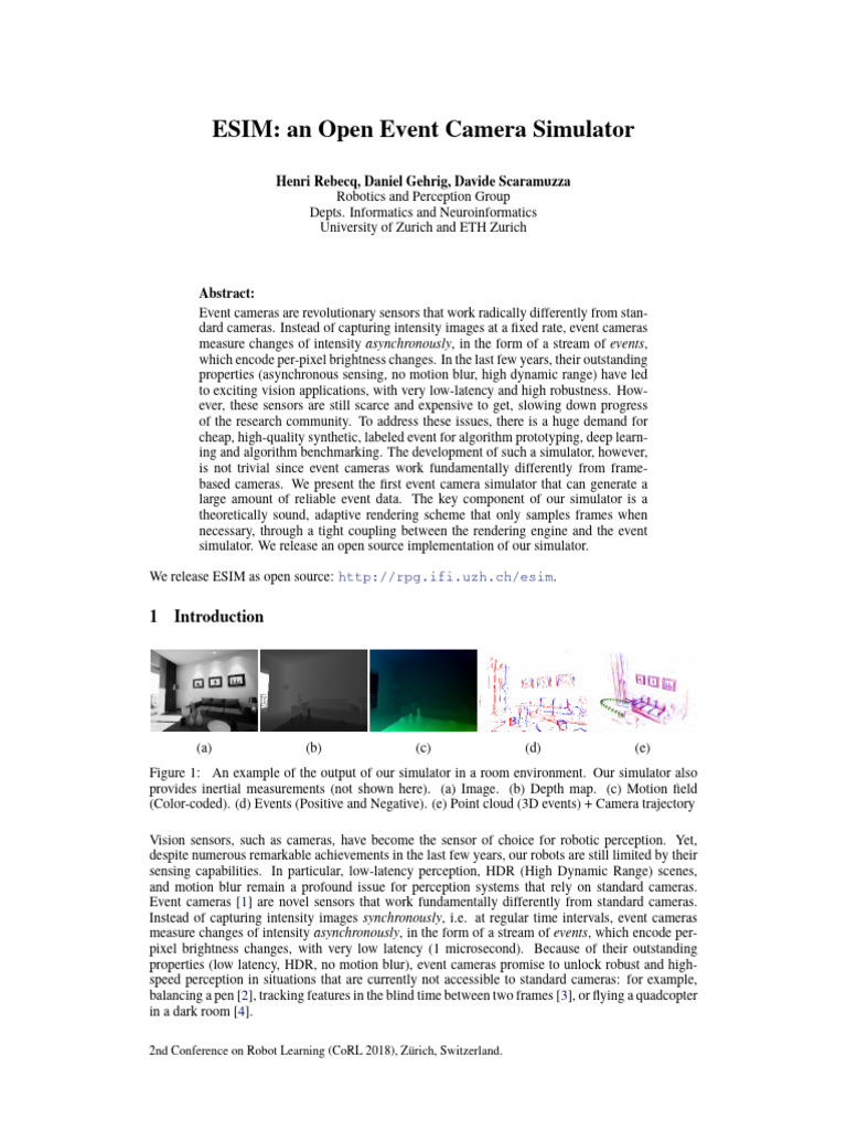 A simple event camera simulator was presented in [22] and implemented as a plugin for the Gazebo
